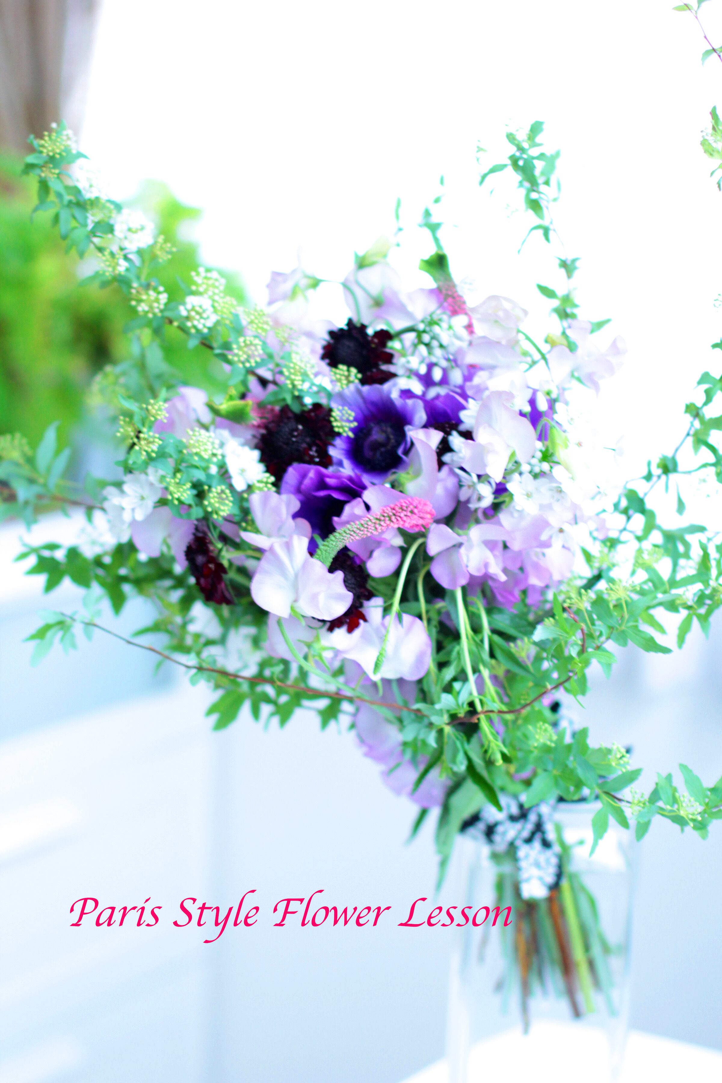 パリスタイルの特徴としてはグリーンも沢山使って、風にそよぐ草花のように動きのあるスタイルが最大の魅力となります。